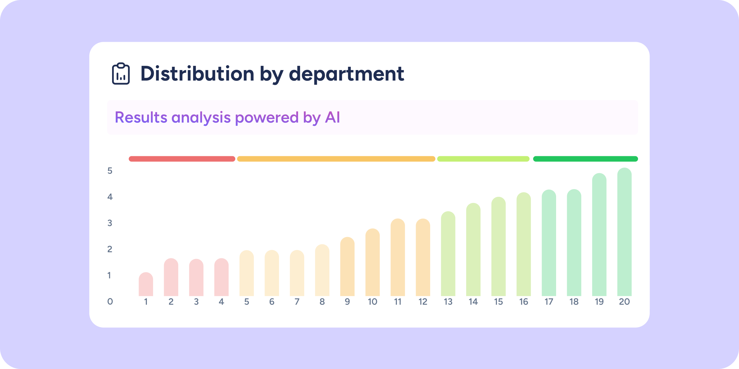 - Total versatility: change the selector to view distribution by department, workplace, or organizational group, and the ranking will update automatically.