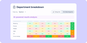 We’re adding a new layer of comparative analysis to the Company results section. Until now, the view showed results for each group separately. With the spider chart, all groups appear in a single visual so you can spot strengths and areas for improvement in seconds, available in both the Evaluations and Surveys tools.