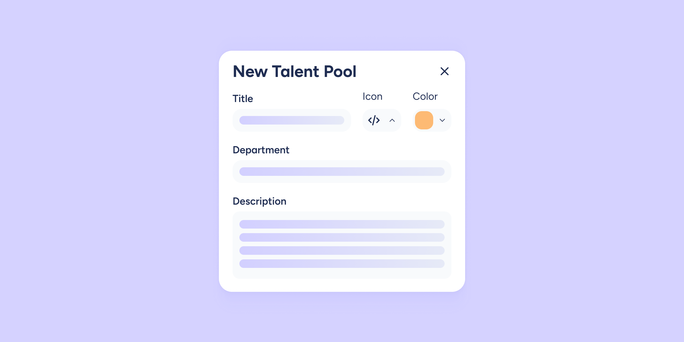 Within the Recruitment tool, you’ll find the Talent Pool section, where you can create as many pools as you need. Just click Add Pool, complete the details, and confirm with Create.