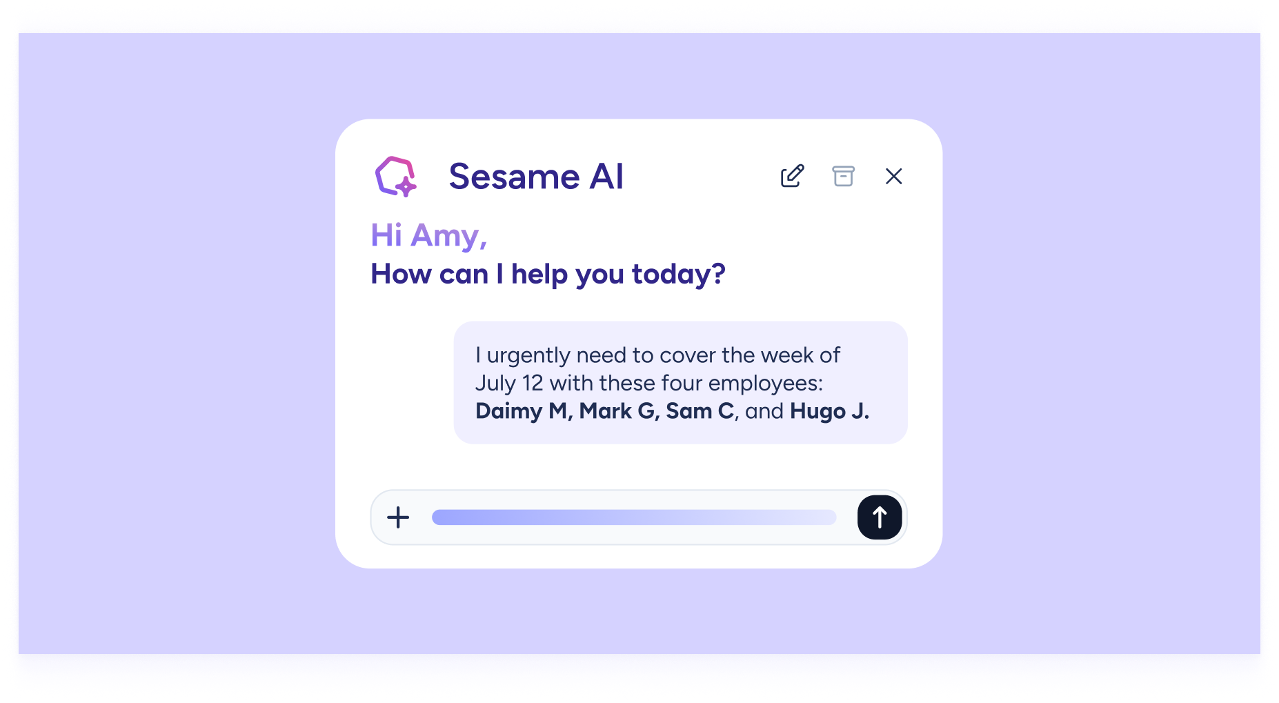Chat with the smartest planner on the market and get a timetable in seconds. The scheduling chat interprets your instructions and automatically creates shifts, no hassle. You can create, edit, or delete shifts just by telling it what to do.