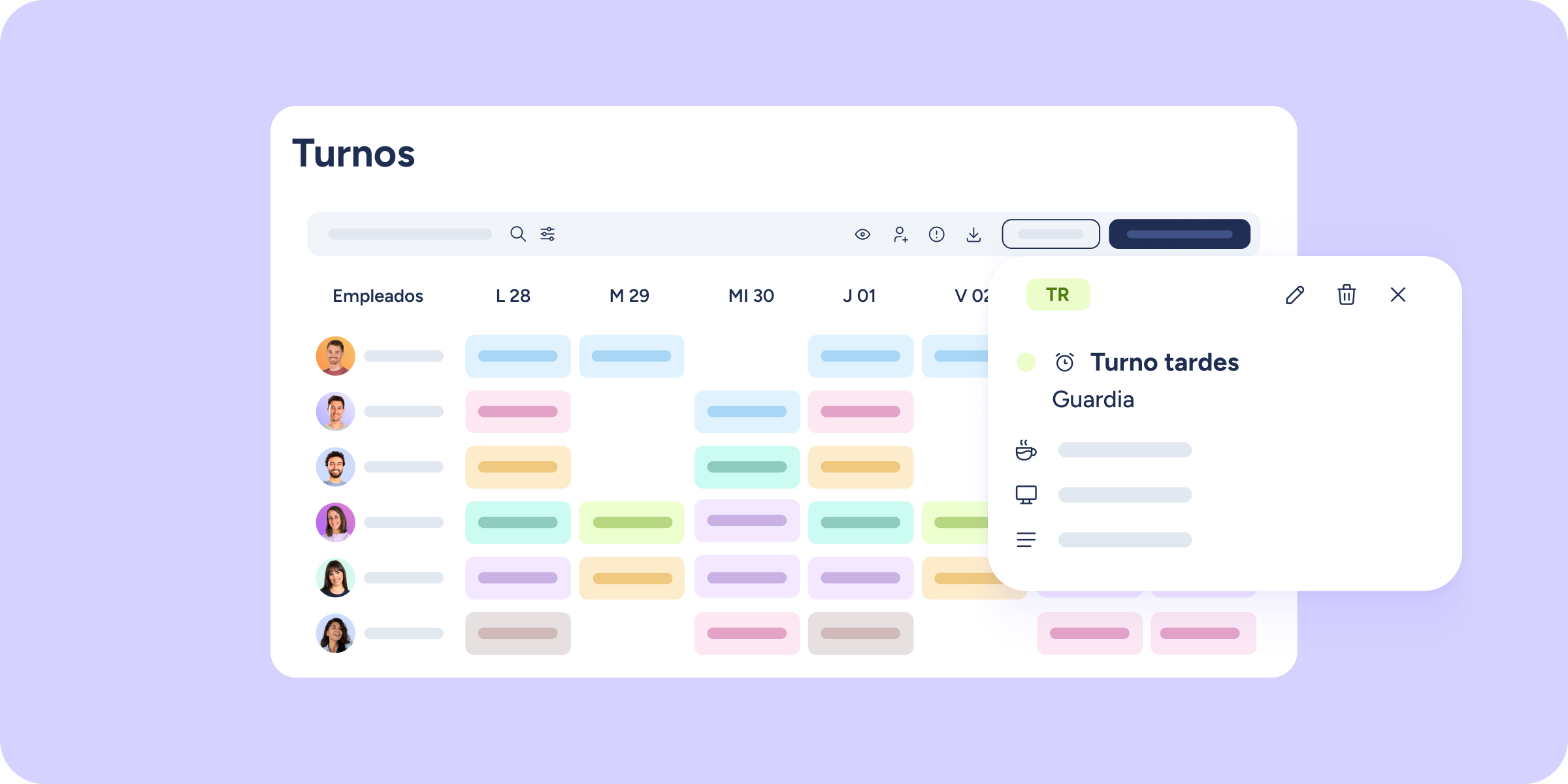 2. Ajusta los detalles del turno, como día, horas, descansos y actividades. También podrás indicar si la guardia es localizada o presencial, para que tus empleados sepan si tienen que estar en el centro de trabajo o no.