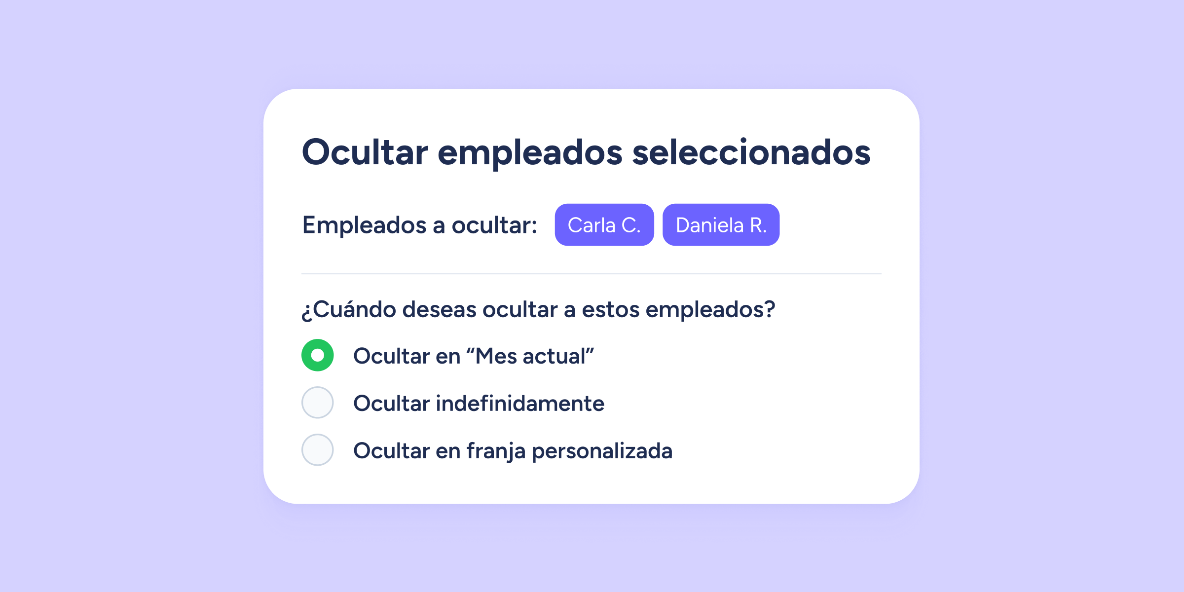 Al seleccionar la tercera opción, podrás indicar exactamente el momento de inicio y de final del periodo en que necesites ocultar a esos empleados.