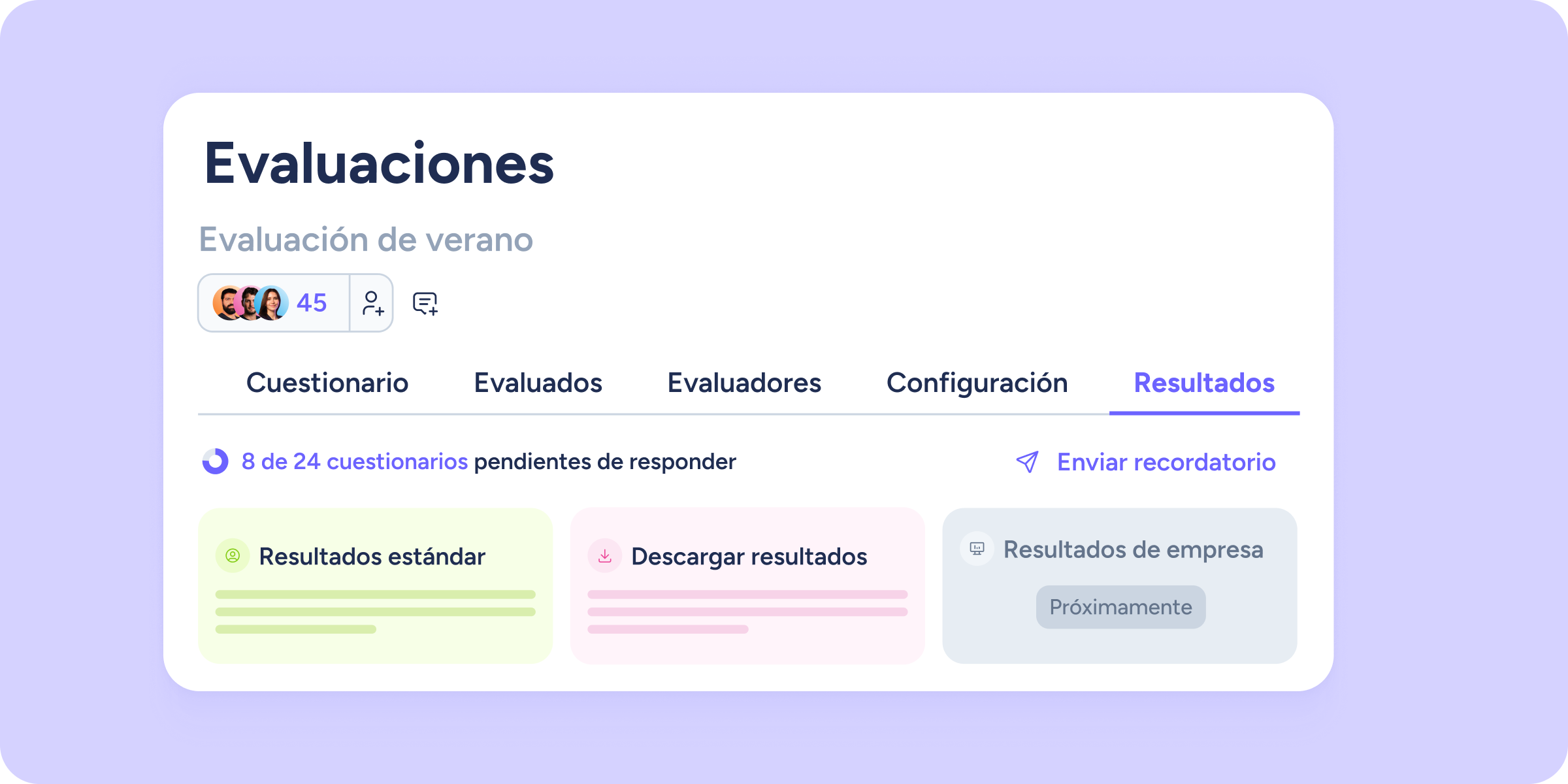 Estamos ultimando los detalles de lo que serán tus resultados más consultados. En ella podrás acceder a una visión panorámica de toda la organización, con KPIs en tiempo real, medias por competencias y la foto completa del estado de tu empresa, sin tener que navegar empleado por empleado.