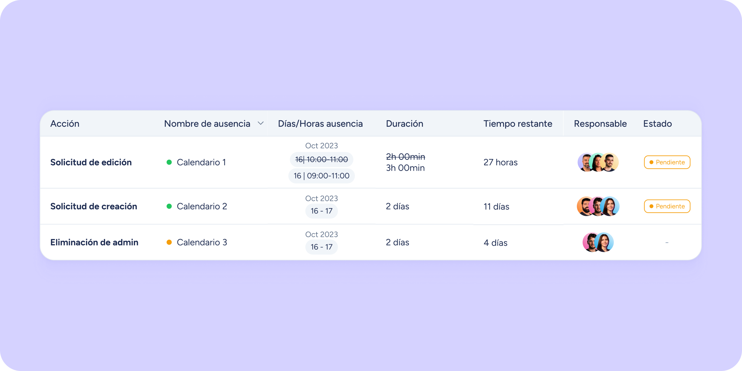 Como administrador, en el historial podrás conocer el estado de todas las solicitudes. Pueden aparecer como aprobadas, rechazadas, pendientes y eliminadas. Además, podrás subir los documentos que necesites y que estén relacionados con cada una de las peticiones y ausencias de tus empleados.