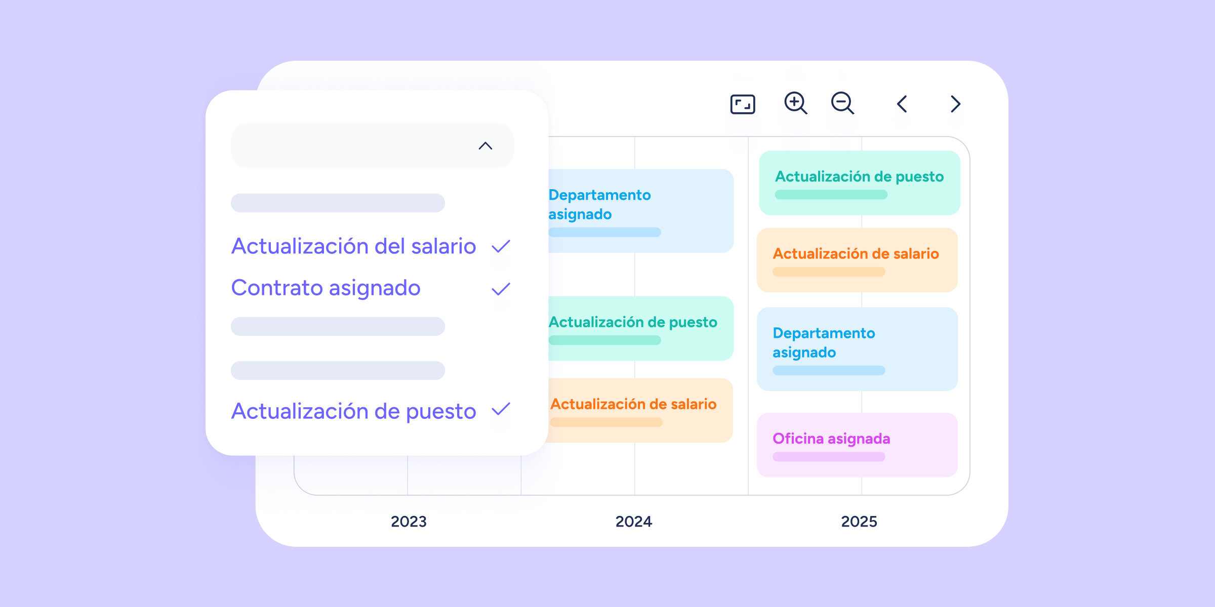 • Más datos disponibles en el timeline. Agregamos nueva información para que el journey sea más completo. Los empleados y los propietarios ahora podrán ver en la línea de tiempo: