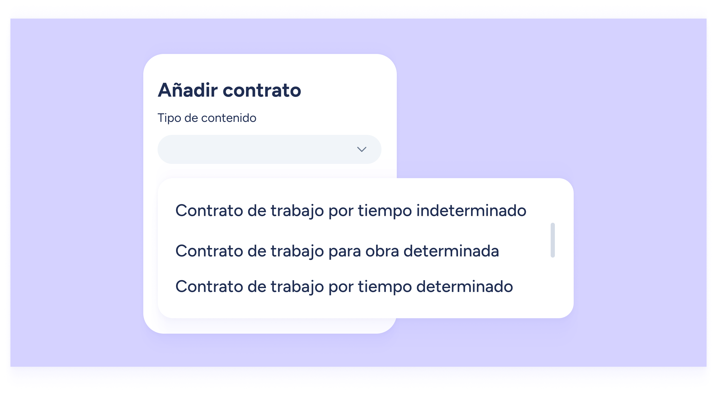 - Tipo de contrato: un nuevo desplegable con 11 opciones fijas para estandarizar la información. Así, te aseguras de que todo el equipo usa siempre los mismos términos, logrando una consistencia total.