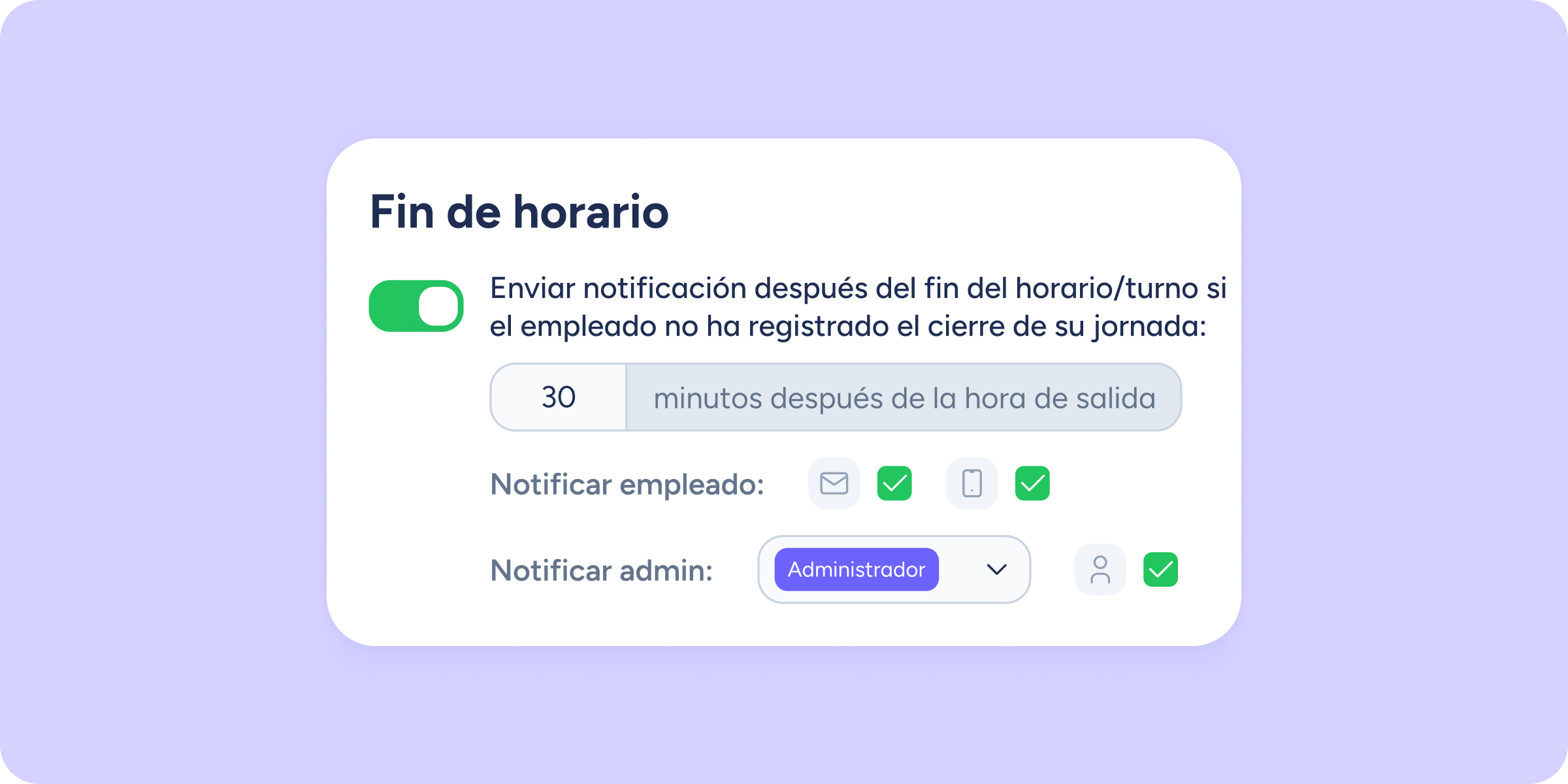 Hasta ahora, podías configurar una alerta si alguien olvidaba registrar su entrada. Ahora, podrás recibir avisos para cubrir toda la jornada laboral como: