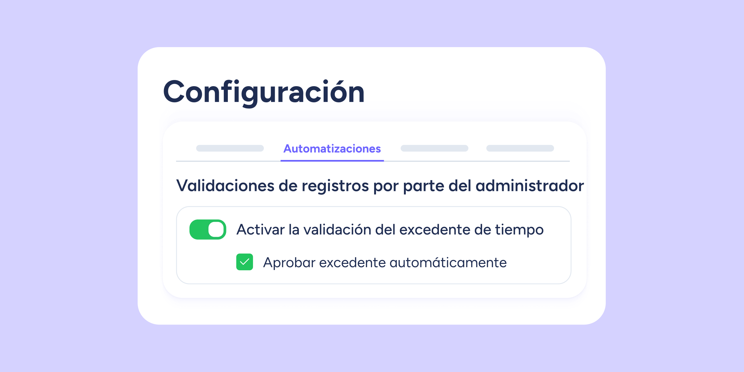 Podrás habilitar esta opción desde la siguiente ruta: Configuración >> Automatizaciones >> Validaciones >> Validaciones de registros por parte del administrador. Allí, verás la casilla para marcar “Aprobar excedente automáticamente”. Esta funcionalidad está disponible para administradores y mánagers.