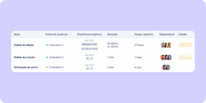 - Revisão histórica: visualize a atividade de férias para conhecer o histórico de ações no calendário do colaborador.